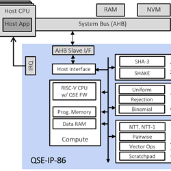 The Rambus QSE IP is available as a standalone cryptographic core or integrated in the Rambus Quantum Safe Root of Trust IP as a comprehensive hardware security solution. It supports the National Institute of Standards and Technology (NIST) draft standards for quantum-resistant algorithms (FIPS 203 ML-KEM and FIPS 204 ML-DSA), and provides SHA-3, SHAKE-128 and SHAKE-256 acceleration. For highly secure applications requiring additional protection against differential power analysis (DPA) attacks, a DPA version of the QSE IP is available.